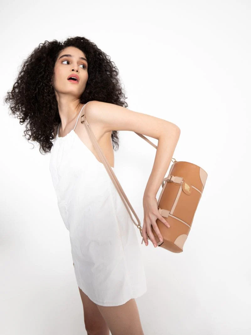 An endearing mini duffel bag with contrast colour panelling running across the bag. Our Salacia is lightweight and perfect if you don’t wanna carry around a heavy bag.